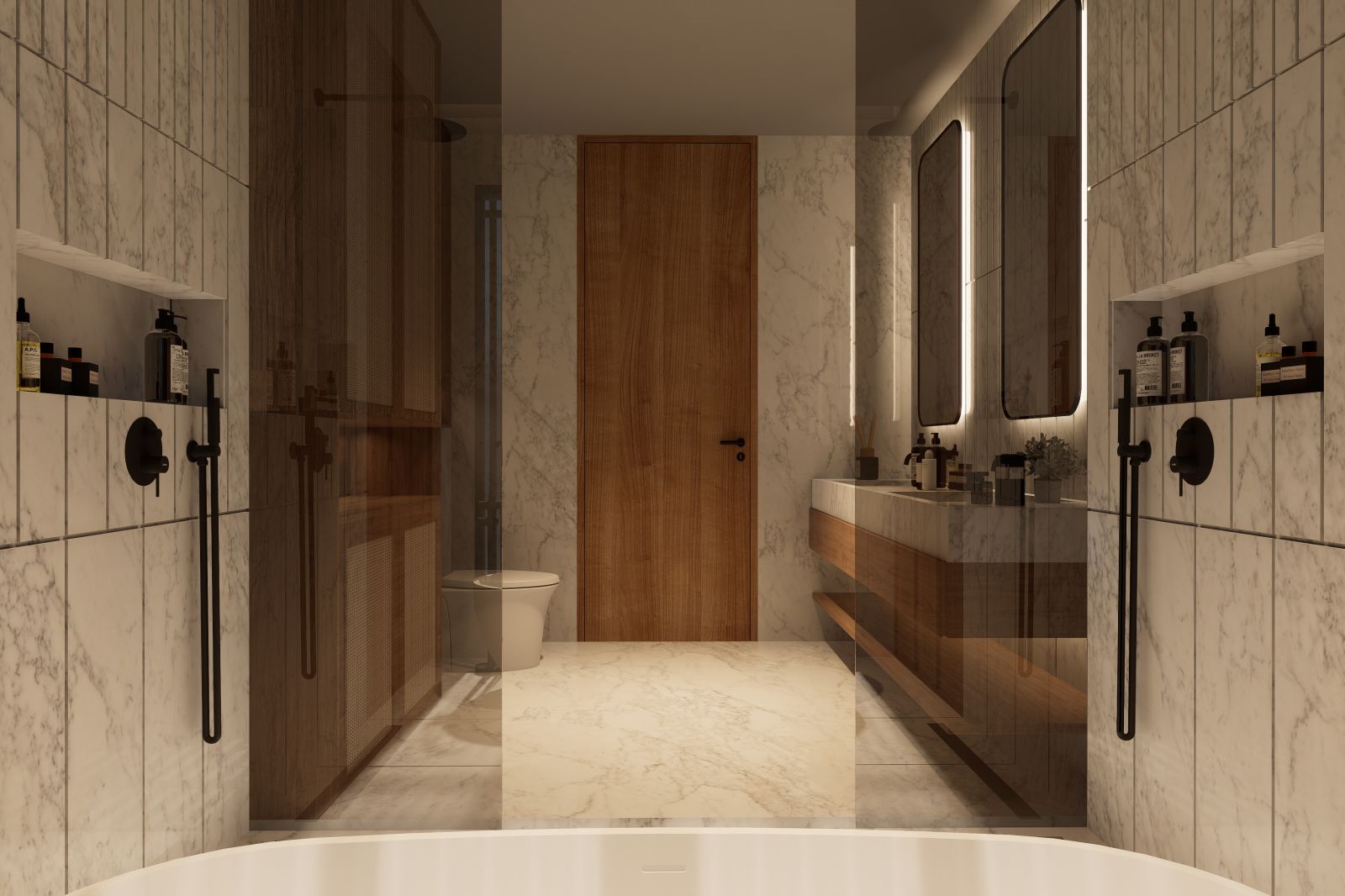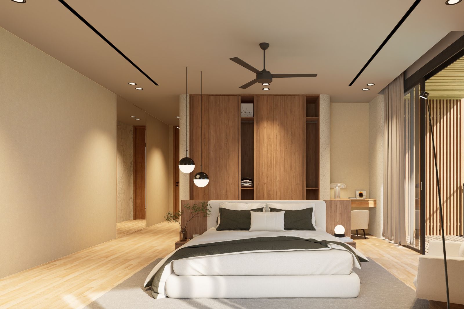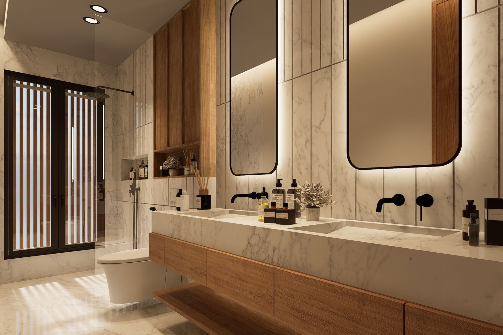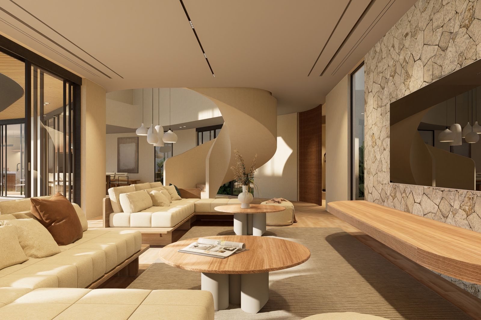 This house offers over 500 sqm of living space and 65 sqm for parking, storage, and staff areas, all on a 628 sqm lot in a private, gated community with 24-hour security. It ensures complete privacy with no visibility from the outside. The property includes 5 bedrooms, 5.5 bathrooms, and private balconies for each bedroom. Inside, you'll find a sunken lounge, a TV area, and an open kitchen and dining space, designed for luxurious living. High-quality materials are used throughout, featuring double-glazed Allure Industries windows for energy efficiency and noise reduction. The ducted air conditioning system keeps the interior clean without visible units, and all bathrooms are finished with marble and equipped with TOTO appliances.
