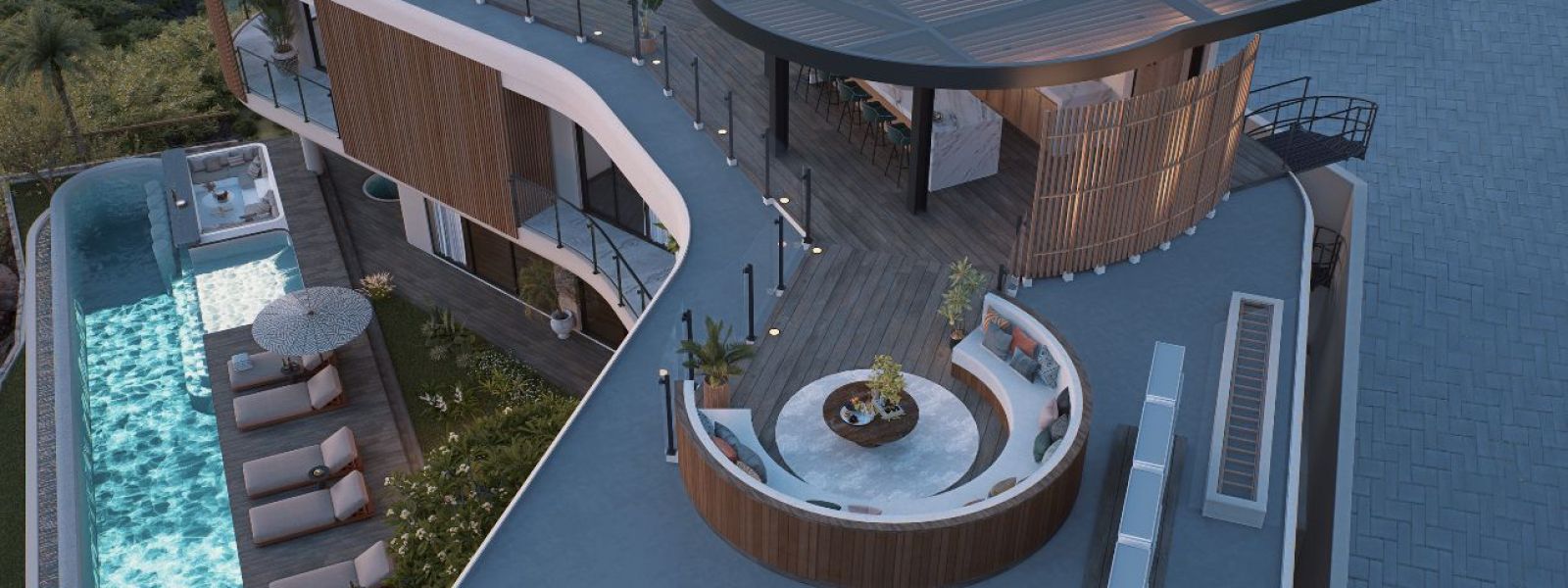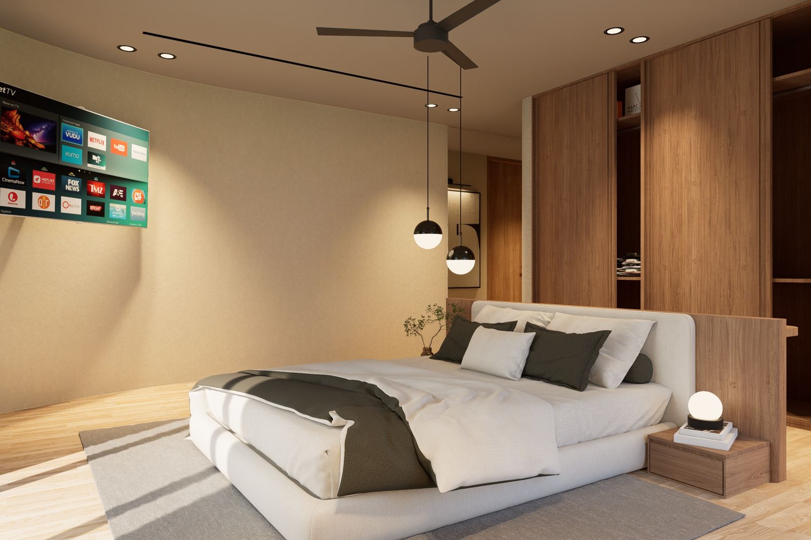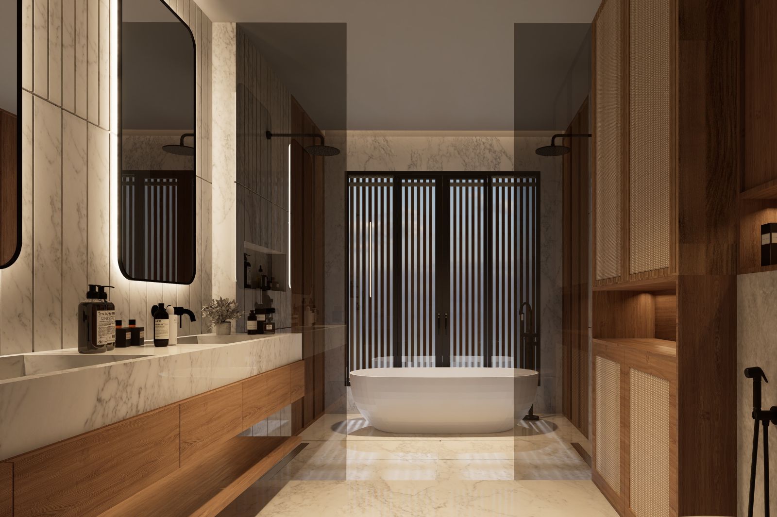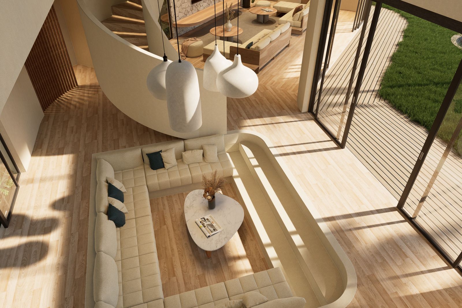 This house offers over 500 sqm of living space and 65 sqm for parking, storage, and staff areas, all on a 628 sqm lot in a private, gated community with 24-hour security. It ensures complete privacy with no visibility from the outside. The property includes 5 bedrooms, 5.5 bathrooms, and private balconies for each bedroom. Inside, you'll find a sunken lounge, a TV area, and an open kitchen and dining space, designed for luxurious living. High-quality materials are used throughout, featuring double-glazed Allure Industries windows for energy efficiency and noise reduction. The ducted air conditioning system keeps the interior clean without visible units, and all bathrooms are finished with marble and equipped with TOTO appliances.