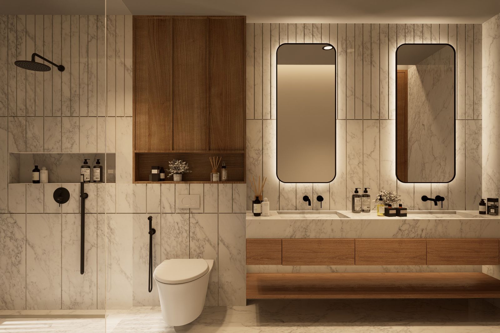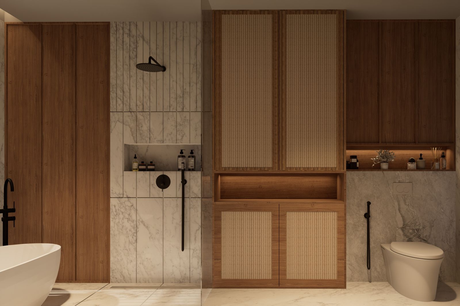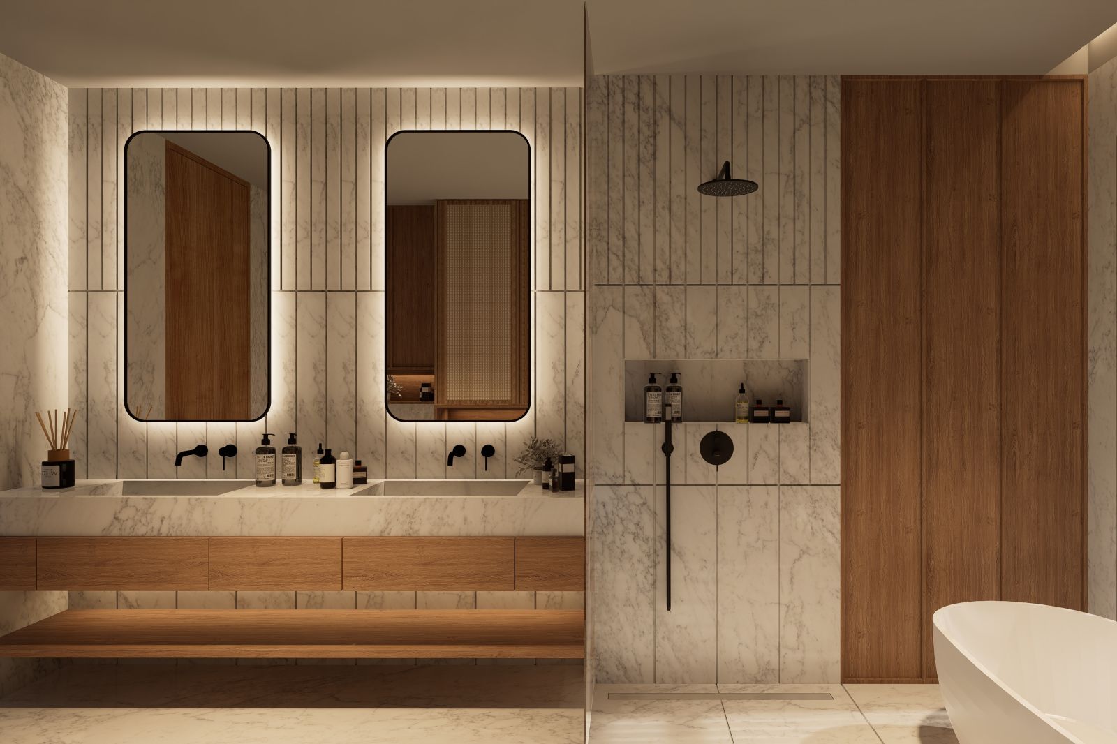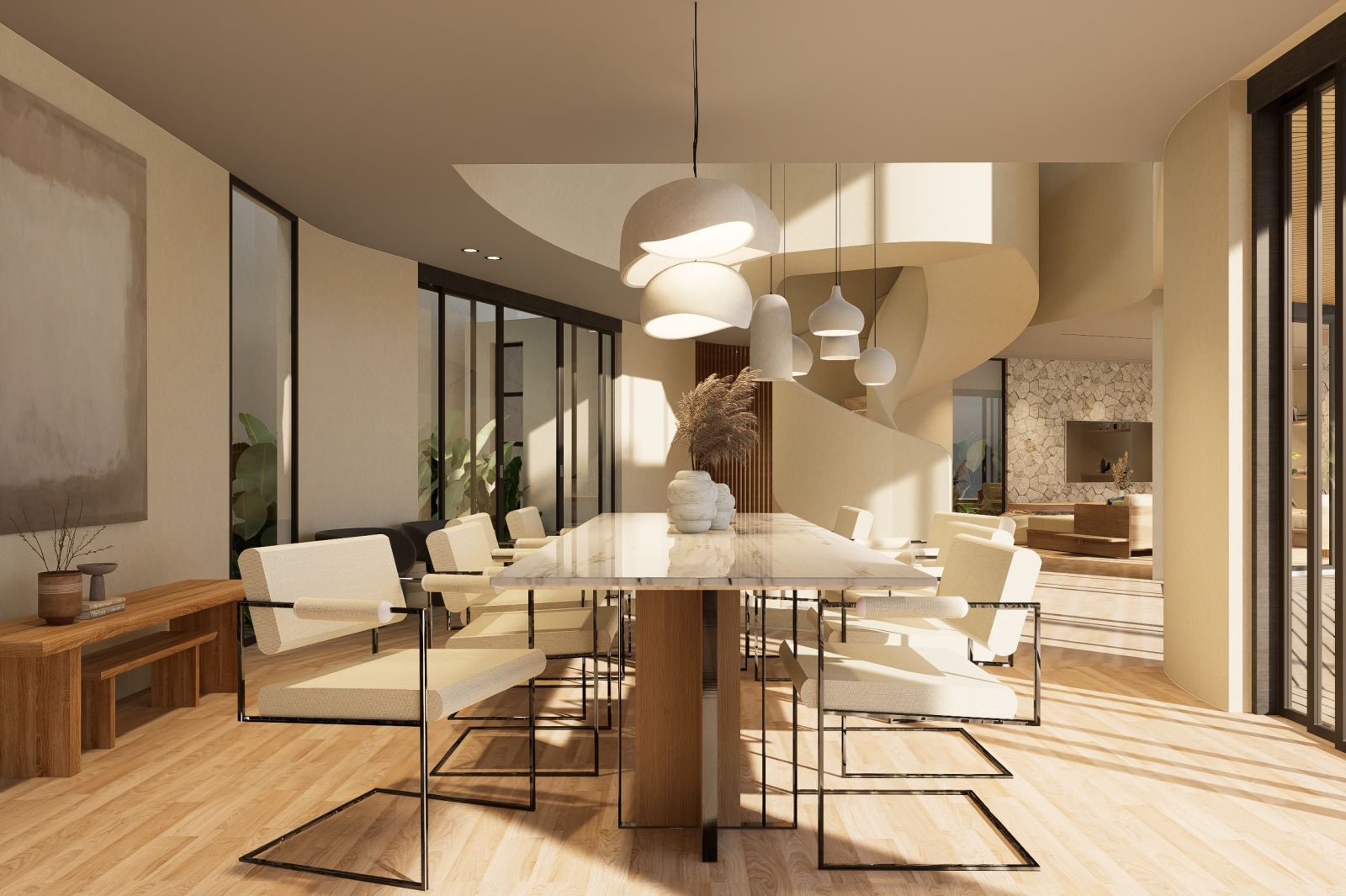 This house offers over 500 sqm of living space and 65 sqm for parking, storage, and staff areas, all on a 628 sqm lot in a private, gated community with 24-hour security. It ensures complete privacy with no visibility from the outside. The property includes 5 bedrooms, 5.5 bathrooms, and private balconies for each bedroom. Inside, you'll find a sunken lounge, a TV area, and an open kitchen and dining space, designed for luxurious living. High-quality materials are used throughout, featuring double-glazed Allure Industries windows for energy efficiency and noise reduction. The ducted air conditioning system keeps the interior clean without visible units, and all bathrooms are finished with marble and equipped with TOTO appliances.