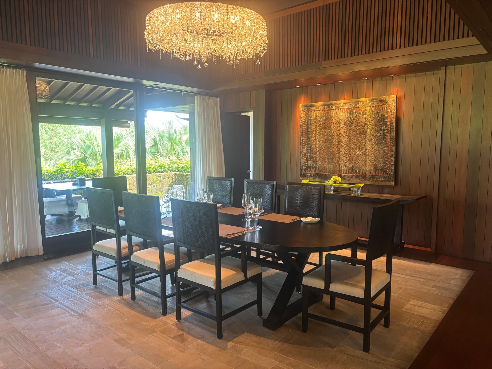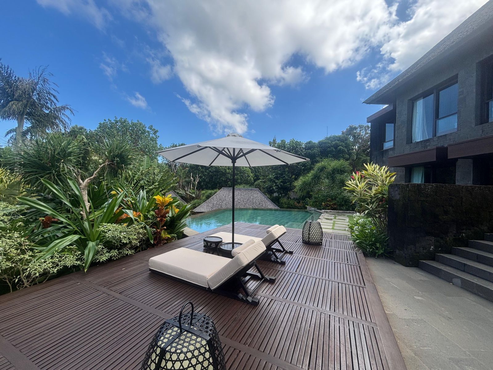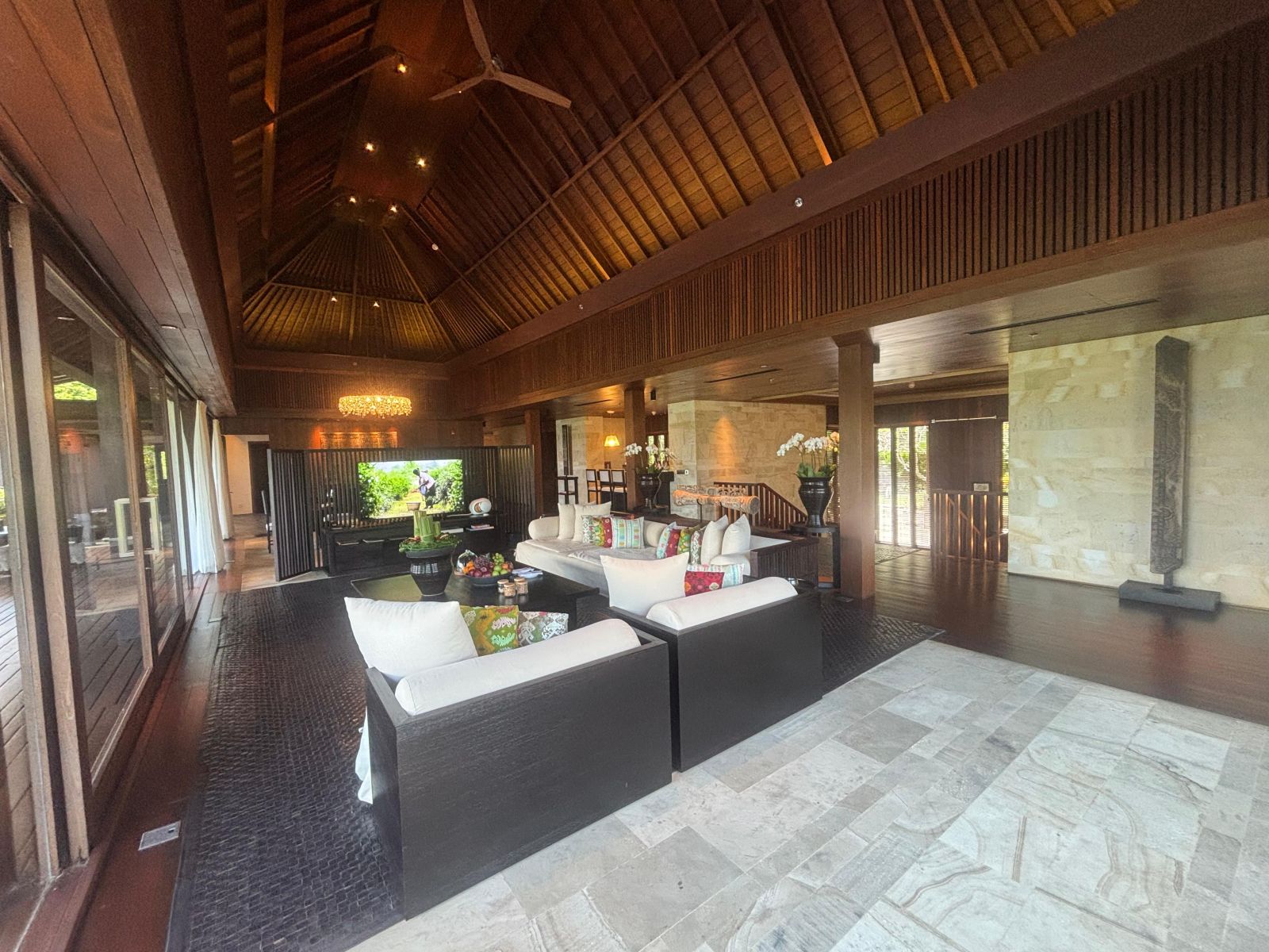 Spanning two levels, the residence welcomes you through a private driveway into a grand foyer that opens into a spacious open-plan living and dining area. Floor-to-ceiling windows frame breathtaking views of the Indian Ocean, with direct access to a wide teak sundeck that invites relaxation under the Balinese sun. The custom-built kitchen, complete with dual pantries, is perfectly suited for both intimate family meals and elegant entertaining. Downstairs, the residence features a master king suite and guest king suite, each with private studio-lobby spaces and walk-through wardrobes. A third double bedroom, ideal for children, is connected to a separate nanny room with a private entrance - designed for seamless living with the utmost comfort and discretion.