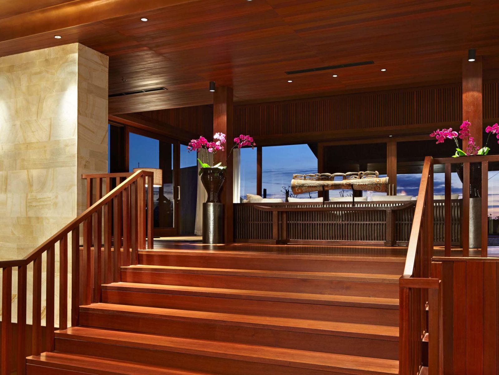 Every bedroom boasts stunning ocean views and opens onto private terraces with sweeping panoramas. En-suite bathrooms are finished in exotic natural stone and include both indoor and outdoor bathing facilities, evoking the serenity of a private spa retreat. Technological comforts such as air-conditioning, high-speed internet, and a Bang & Olufsen sound system blend effortlessly with traditional materials, ensuring a luxurious yet authentic experience.