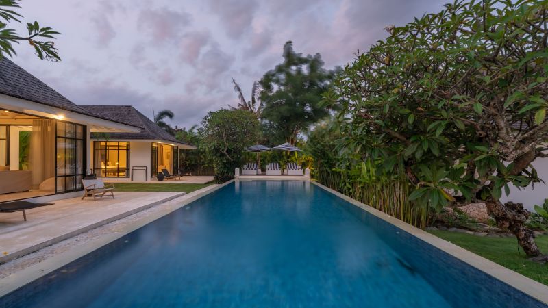 Exceptional 180-degree rice field views unfold toward distant mountain silhouettes, creating a serene backdrop that can be enjoyed from every level of the villa. Facing west, the property captures soft sunset light and benefits from a naturally breezy setting. Seseh Beach is conveniently located just 1.4 km away, approximately three minutes by scooter.