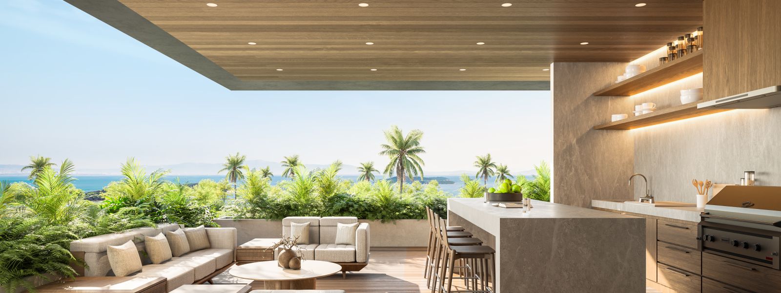 Upon entering this impressive villa through its oversized front door, future owner are welcomed into a space that embodies elegance. This grand villa features two luxurious master bedrooms and integrates state-of-the-art smart home technology, allowing residents to easily manage ambient lighting, climate controls, and security features for a seamless living experience. Boasts soaring 4-meter high ceilings, enhancing the feeling of space and airiness, with premium materials and refined finishes throughout. The second-floor retreat is ideal for entertaining, offering a sophisticated grill/BBQ area, a cozy fire pit, and a stylish bar setup, all surrounded by panoramic ocean views. For relaxation, the wellness area includes a fully equipped gym, a rejuvenating sauna, and an invigorating cold plunge, alongside a stunning pool for warm days. Additionally, a state-of-the-art theater room caters to movie enthusiasts, enhancing the entertainment experience. The villa also provides accommodations for staff, featuring dedicated maid’s quarters to attend to the household's needs, ensuring a comfortable and luxurious lifestyle.